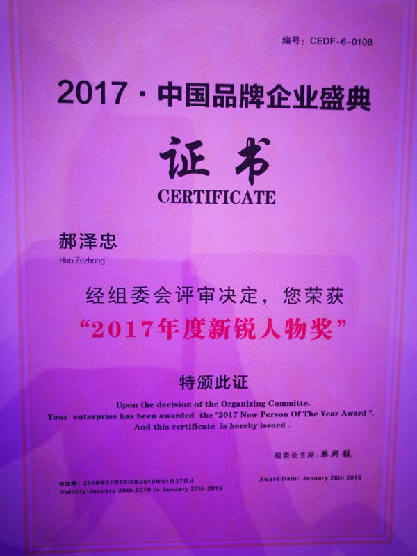 ? ? ? ?在此次盛典上,中科宇杰董事長郝澤忠先生作為一個走在技術(shù)創(chuàng)新的前列的大型現(xiàn)代化企業(yè)的奠基者和管理者,憑借自己的行業(yè)實力,從國內(nèi)眾多候選企業(yè)家中脫穎而出,被組委會授予“2017年度新銳人物獎”。