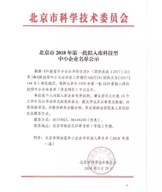 祝賀中科宇杰入選北京市2018年科技型中小企業名單