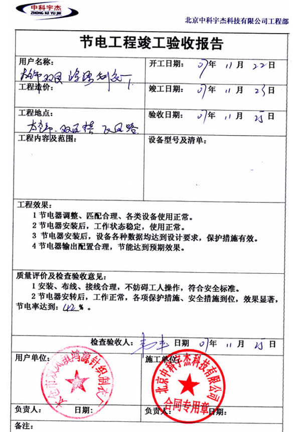 工程竣工后,中科宇杰工程人員對現場進行回訪,節電達到驚人的42%,效果明顯。改造工程一方面降低用電,減少電費支出;一方面保護了節能設備,延長設備壽命,減少維護成本,得到間接的經濟效益。