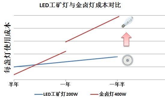 從短期看,金鹵燈的投入比LED工礦燈少。從長期看,LED工礦燈是一種更環(huán)保、節(jié)能的綠色照明產(chǎn)品,而且不到1年的時間內(nèi)將收回全部投入。