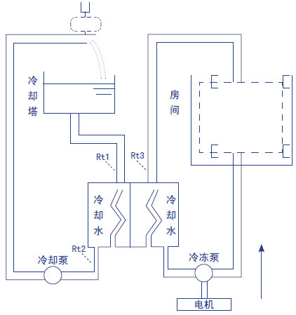 由冷凍泵及冷凍管道組成。從冷凍機組流出的冷凍水由冷凍泵加壓送入冷凍水管道,在室內進行熱交換,帶走室內的熱量,使室內的溫度下降。